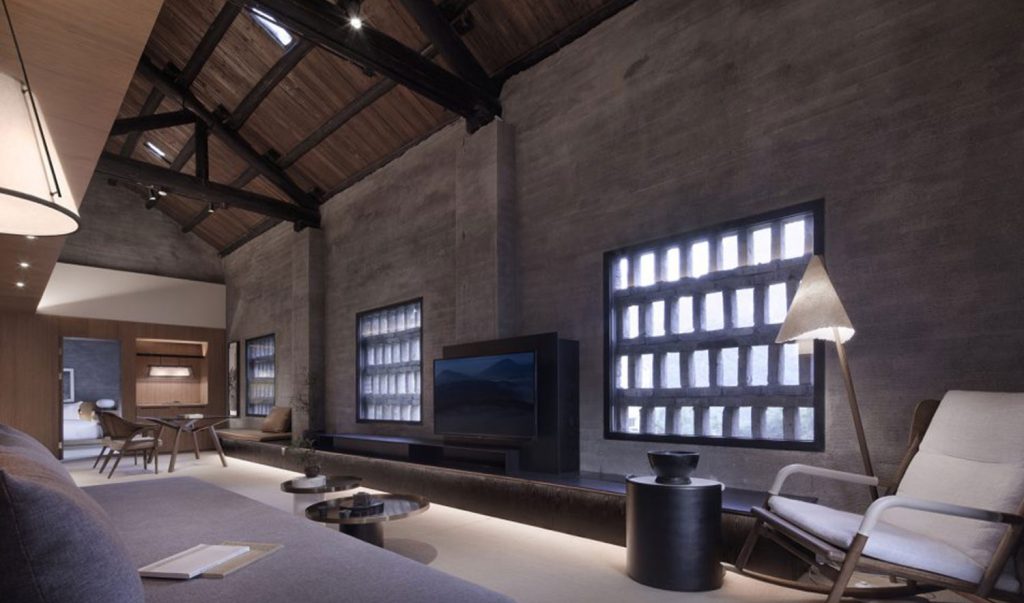 The Alila Yangshuo Hotel project applied Tianan decorative wall panel systems across various interior areas, selecting different panel functions and surface finishes to meet the specific requirements of each space.
