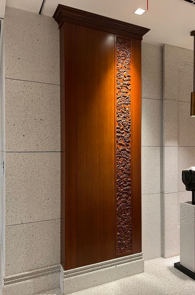 - Material Combination:Deep brown wood-grain panels paired with beige plain panels for a balanced and professional look.