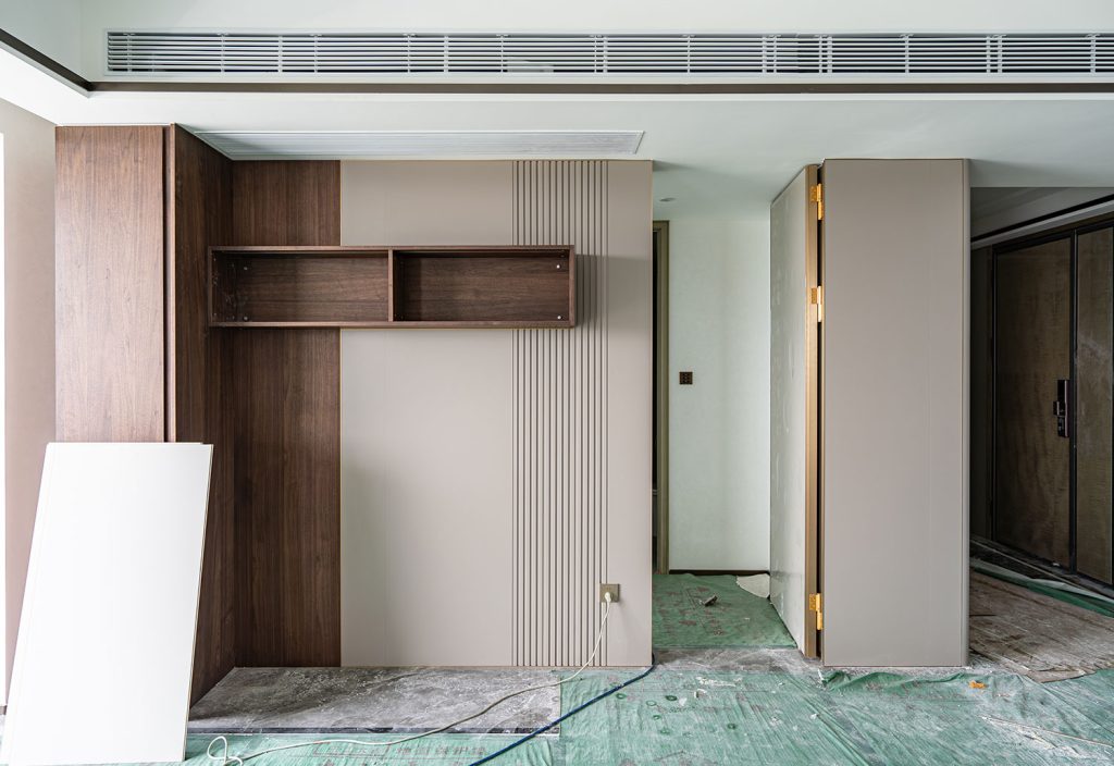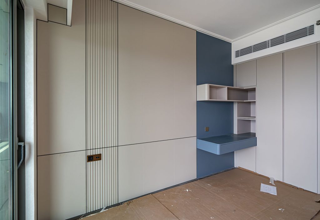 This project includes two residential units at Poly Sanlong Bay, showcasing Tianan wall panel applications to create refined, modern interiors. Both units feature a combination of wood-grain, fluted, and plain wall panels, with coordinated color schemes, seamless door-wall integration, and decorative detailing.