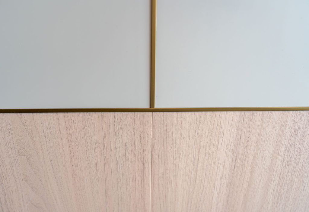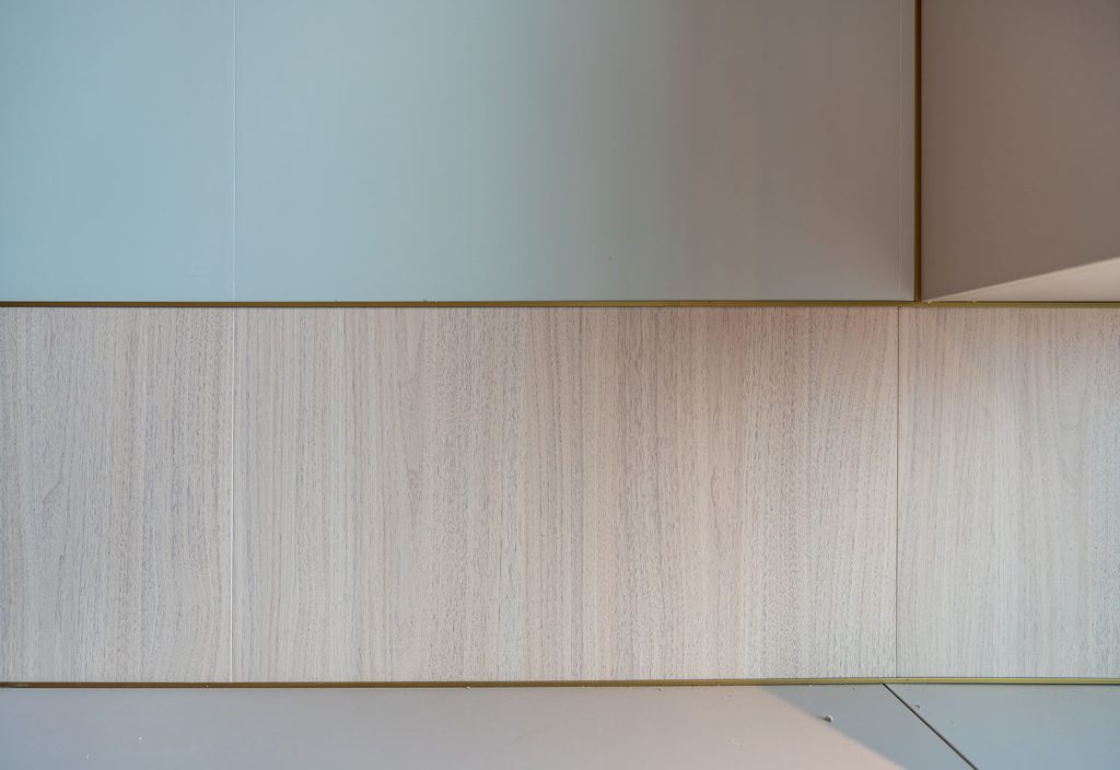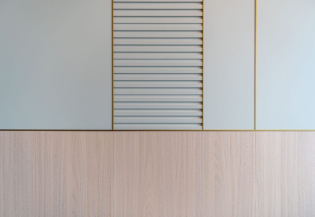 • Versatile use of wood-grain, fluted, and plain wall panels across two units